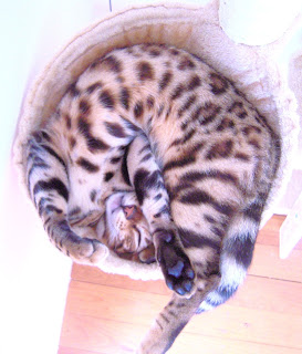 We heard this week that Calypso’s litter-mate and favourite brother, Catwalk Faberge, won Reserve short-haired Cat of the Year 2012. Because he is 17 months old and has only been shown in the adult cats division for a few months, this is quite an accolade. Lots of people have asked if we will show Calypso (Faberge’s full sister) and Caleb (Faberge’s half-brother) but I think we shall simply bask in his reflected glory. When the prizes are cash we’ll be there, but until then we don’t need any pretty ribbons. Nice to know that they are from award-winning stock, though. As if we didn’t know they are beautiful!