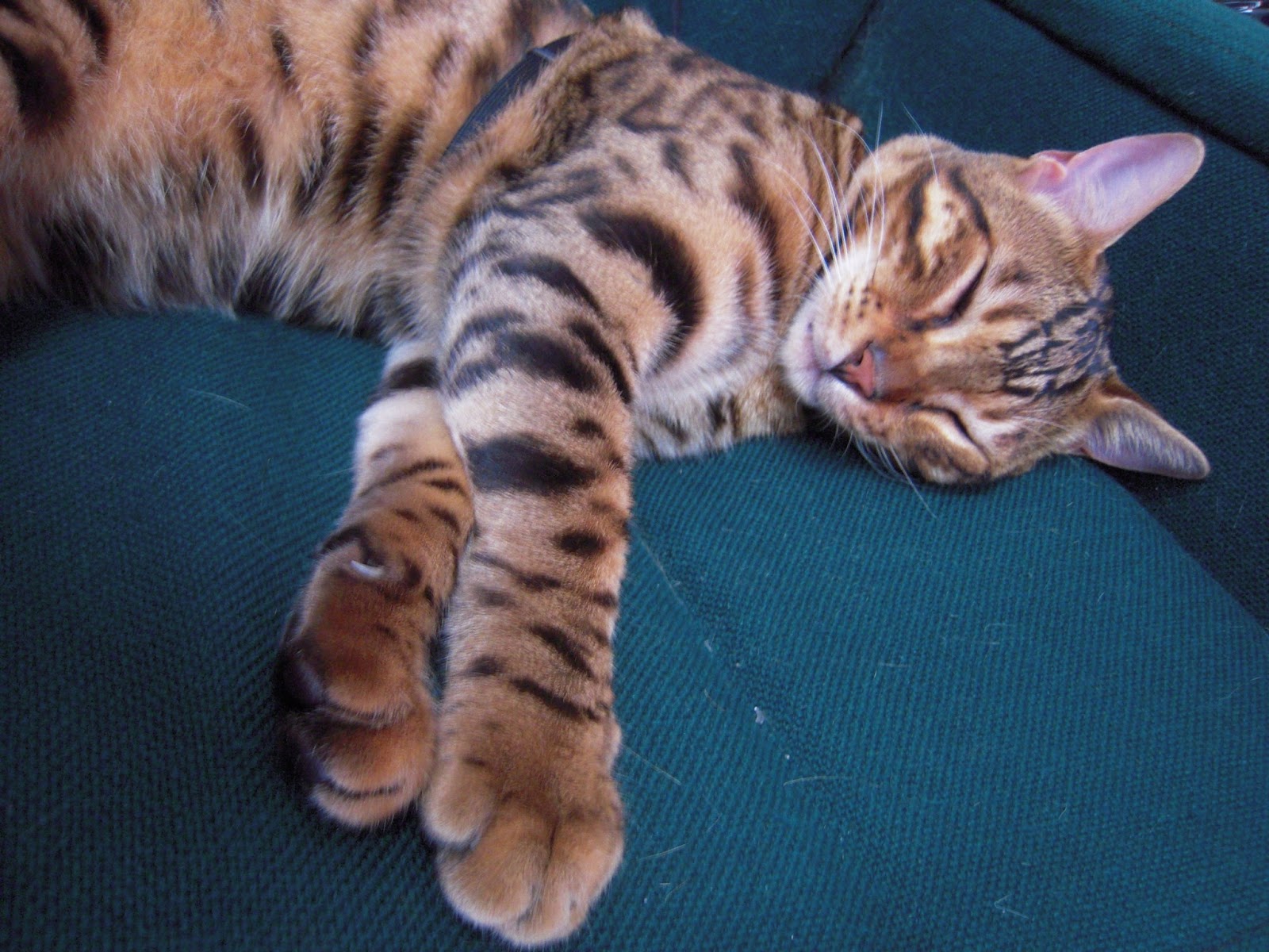 But no, even when he's showing her his belly and inviting a game, Polly knows better than to mix it with Caleb. In fact, it's probably better to just look away and pretend he's not there. |
